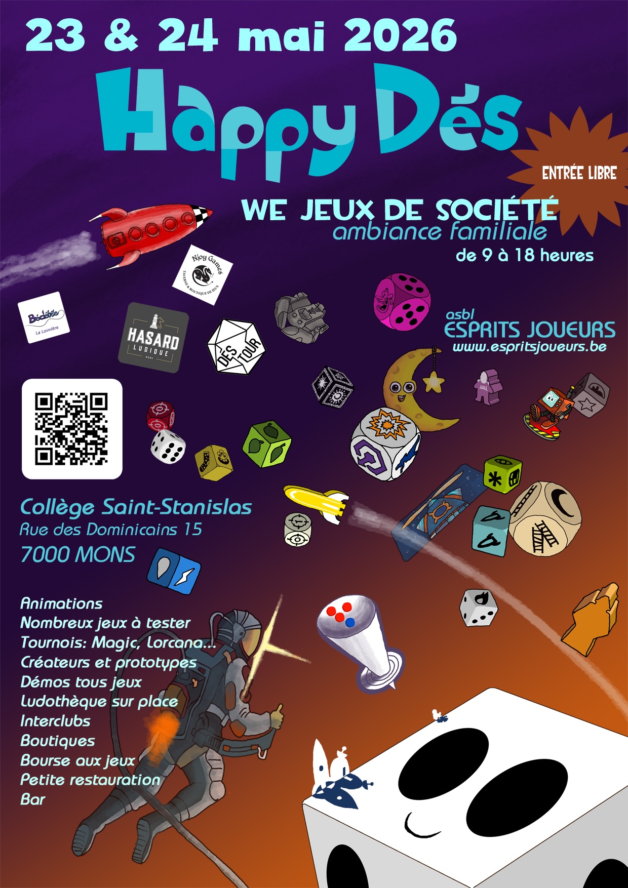 Nous organisons également, une fois par an, notre festival ludique « Happy Dés » afin de faire découvrir l’univers du jeu de société et de figurines à un maximum de personnes. C’est également un lieu de rassemblement pour les différents clubs de la région qui se retrouvent le temps d’une journée, ainsi qu’un lieu de compétition lors des différents tournois organisés.